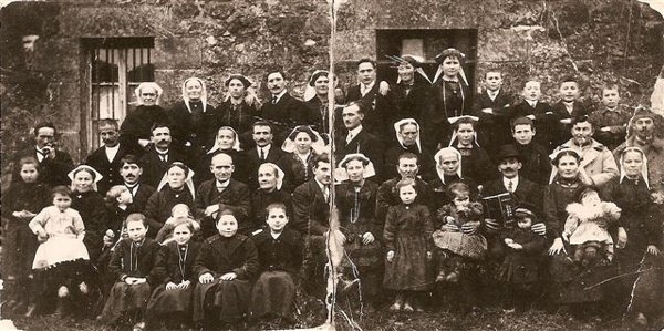 Cette photo a été prise le 30.01.1921 à Plourac'h (22), il s'agit du mariage d' Anne Marie LE COZ et Jean Marie LE GUILLOU. En partant de la gauche, au premier rang des adultes, la 3ème et 4ème personnes sont Jean Marie QUERE et Maria LE COZ. A droite de la mariée, nous avons Jean Marie LE COZ et son épouse Marie Anne LANDOUAR, à l'extrémité peut être Anne Marie DESJARS